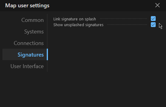 - In the Signatures section, enable the ‘Link signature on splash’ and ‘Show unsplashed signatures’